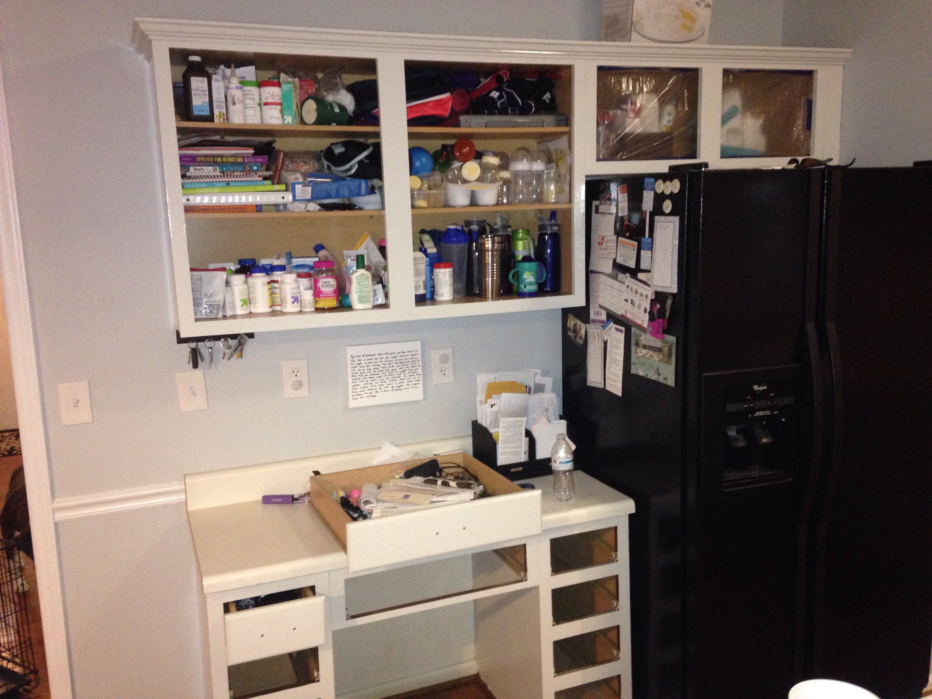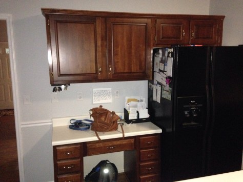 we recently decided that we couldn’t take the look of our 90’s kitchen, but didn’t want to spend $15,000 on a remodel. The cabinets we had were fine, but they were just a dark cherry with brass hardware. It basically looked like the kitchen cabinets from the move Home Alone. After watching a few videos and reading some articles on the Internet, we decided to tackle the project by ourselves. It didn’t hurt that I had some experience in painting and a sprayer at my disposal either. For less than $100 we were able to complete the project and did it in 1 day. We used all existing hardware and sprayed it with an oil rubbed bronze to give it a fresh look. We used a Behr alkyd paint for the cabinets and did it with one coat. Turned out fantastic and gave our kitchen a fresh new look.